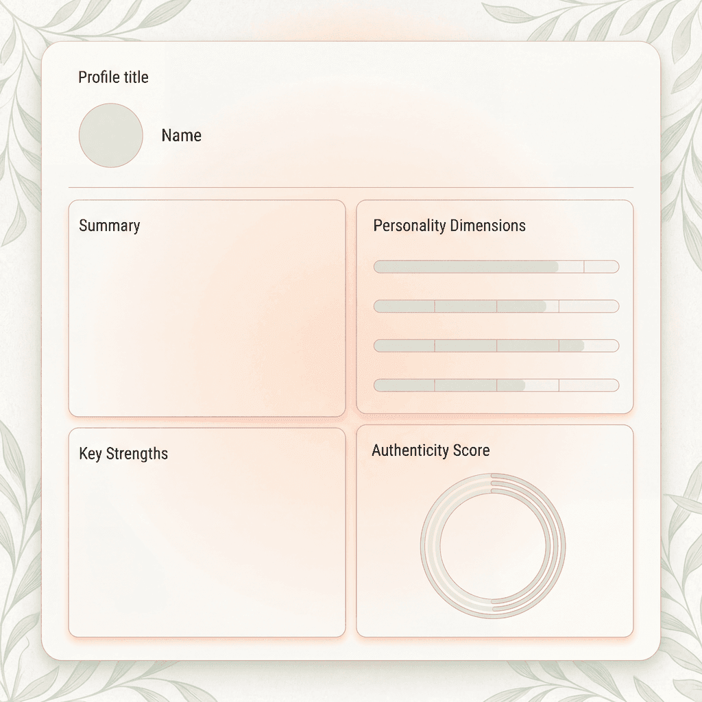 See your personality match percentage with every profile. Aligned dimensions, complementary traits, and honest friction points.